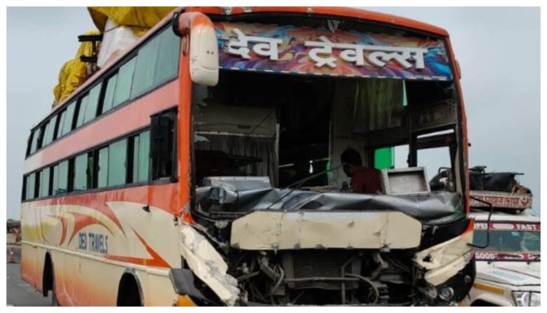 यह हादसा सुबह करीब 5 बजे राष्ट्रीय राजमार्ग 27 पर संग्राम पुल के पास हुआ। कंटेनर ने अचानक ब्रेक लगाए जब उसे पुलिस की गाड़ी ने रुकने का सिग्नल दिया। बस जो पीछे थी, समय पर नहीं रुकी और कंटेनर से टकरा गई।