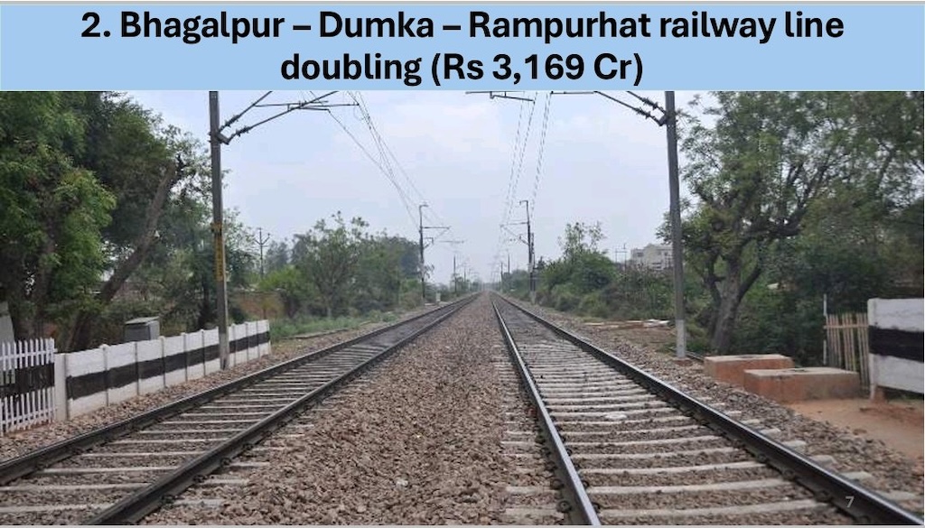 • भागलपुर-दमका-रामपुरहाट रेलवे लाइन को डबल करने की मंजूरी मिली।