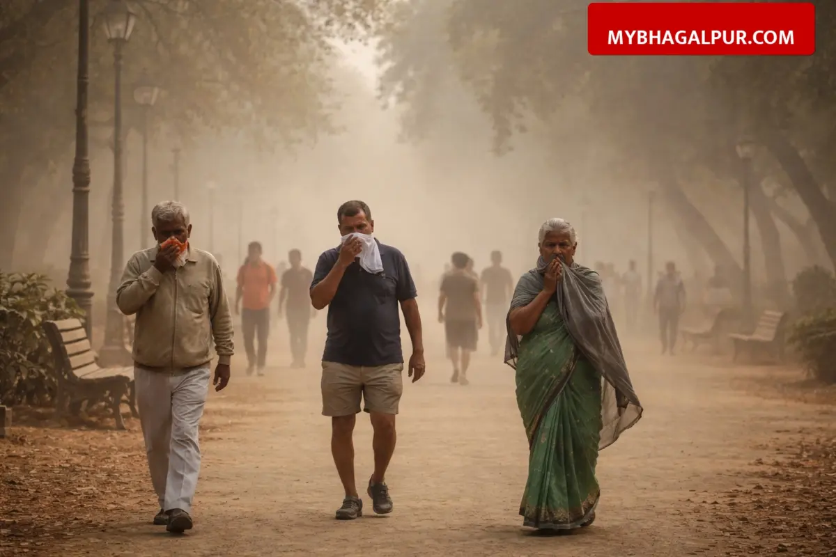 भागलपुर शहर में प्रदूषण का स्तर खतरनाक श्रेणी में पहुंच गया है। सैंडिस कंपाउंड और लाजपत पार्क जैसे प्रमुख इलाकों में सुबह और शाम टहलने वाले लोग धूल और खराब हवा से सबसे ज्यादा परेशान हैं। शहर का एयर क्वालिटी इंडेक्स (AQI) वर्तमान में 181 से लेकर 216 के बीच दर्ज किया गया है। हवा में PM 2.5 और PM 10 की मात्रा सामान्य से कई गुना अधिक होने के कारण बुजुर्गों और बच्चों को सांस लेने में कठिनाई, आंखों में जलन और एलर्जी जैसी स्वास्थ्य समस्याओं का सामना करना पड़ रहा है।