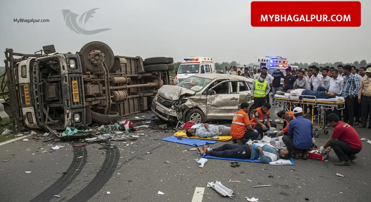 🚨: भागलपुर के जाह्न्वी चौक पर दर्दनाक हादसा, सड़क पर गिरा मोबाइल उठाने गए छात्र को ट्रक ने कुचला।