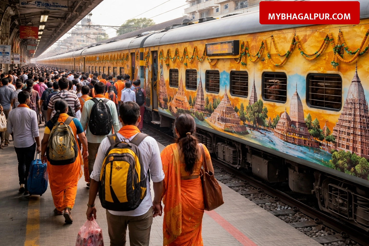 भागलपुर जंक्शन से आज सुबह 6:30 बजे IRCTC की भारत गौरव टूरिस्ट ट्रेन श्रद्धालुओं को लेकर अपनी 9 दिनों की यात्रा पर रवाना हो गई है। यह विशेष तीर्थाटन यात्रा 11 मार्च से शुरू होकर 19 मार्च 2026 तक चलेगी। रेलवे के अनुसार, इस ट्रेन के माध्यम से श्रद्धालुओं को देश के प्रमुख धार्मिक स्थलों के दर्शन कराए जाएंगे। ट्रेन को भागलपुर के कोचिंग यार्ड में तैयार किया गया था और सुबह 4 बजे से ही यात्री स्टेशन पर जुटने लगे थे।