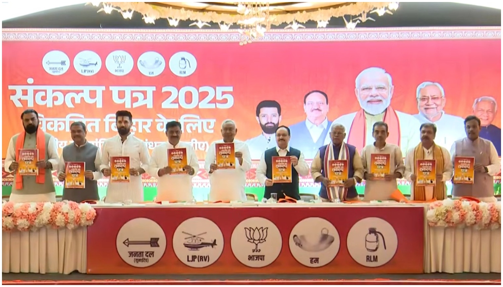 बिहार चुनाव के लिए NDA ने जारी किया घोषणापत्र, 10 लाख नौकरियों और मुफ्त शिक्षा का वादा