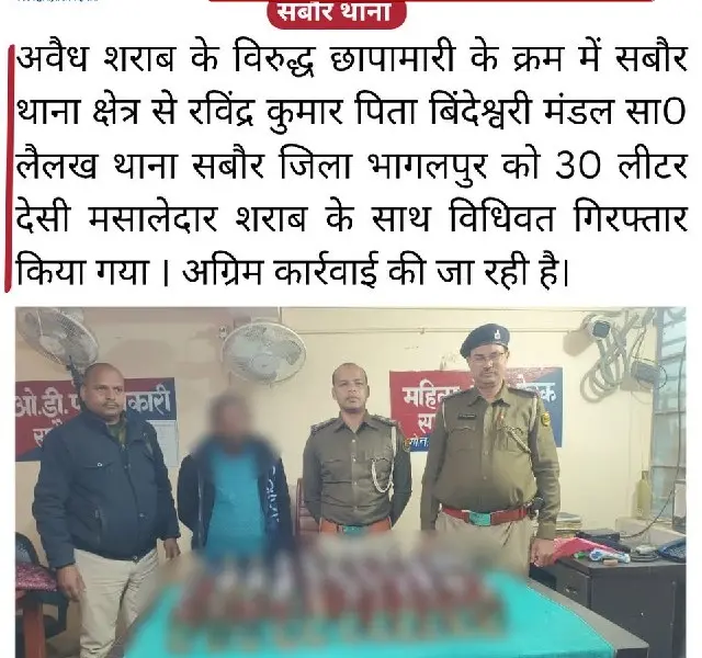 Posted inCity Local, Sad/Bad भागलपुर में शराब तस्कर पर पुलिस का डंडा, सबौर से 30 लीटर देसी शराब के साथ एक गिरफ्तार by Pooja KanjaniFebruary 14, 2026
