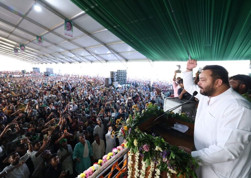 Posted inCity Local तेजस्वी यादव ने भागलपुर में 2025 बिहार विधानसभा चुनाव की शुरुआत की, महिलाओं को 30,000 रुपये देने का वादा किया। by Lov SinghOctober 9, 2025