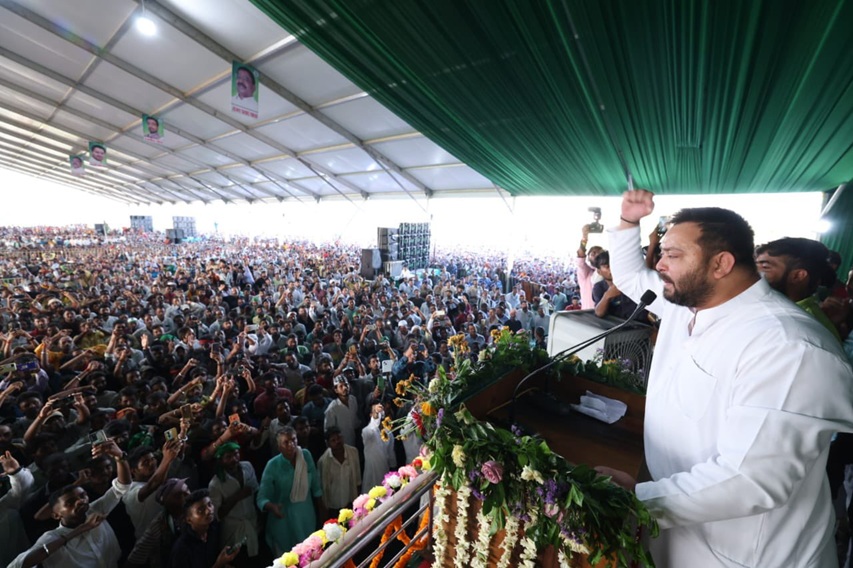 तेजस्वी यादव ने भागलपुर में 2025 बिहार विधानसभा चुनाव की शुरुआत की, महिलाओं को 30,000 रुपये देने का वादा किया।