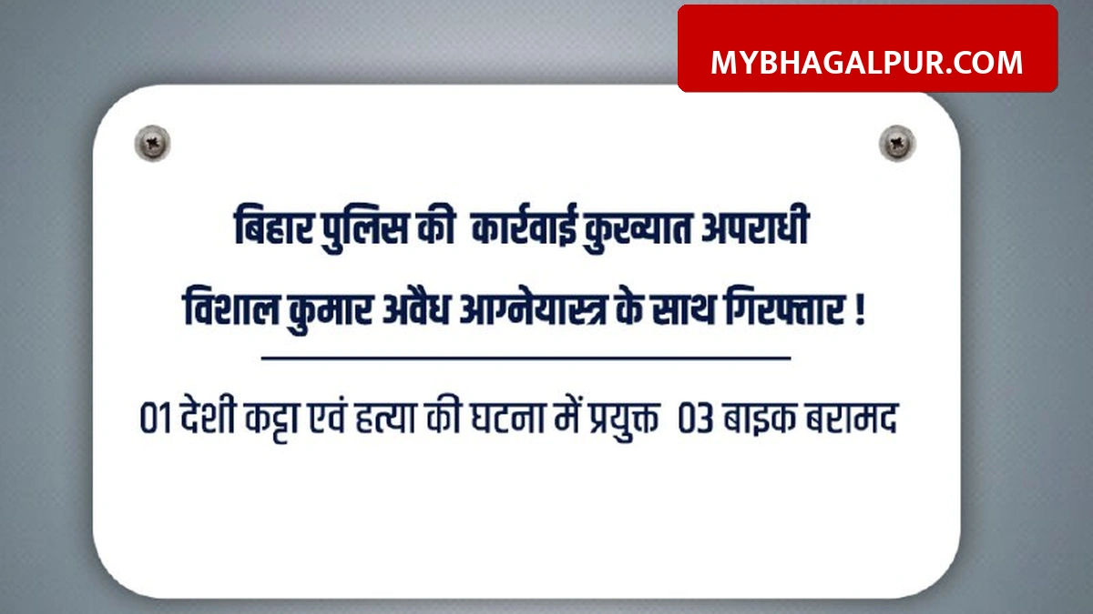 बिहार एसटीएफ और पूर्णिया जिला पुलिस ने मिल कर कार्रवाई करते हुए 29 जनवरी 2026 को विशाल कुमार को दबोच लिया। गिरफ्तारी के वक्त पुलिस ने उसके पास से एक देसी कट्टा बरामद किया है। इसके साथ ही हत्या की इस घटना में इस्तेमाल की गई तीन मोटरसाइकिलें भी पुलिस ने जब्त की हैं। पुलिस अब इस मामले में आगे की कानूनी कार्रवाई कर रही है।